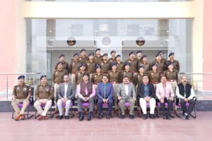 इस अवसर पर संस्थापक निदेशक डॉ. जी.के. गोस्वामी ने अधिकारियों को संबोधित करते हुए पुलिस सेवा के कठिन दायित्वों और त्याग-समर्पण से जुड़े पहलुओं पर प्रकाश डाला। उन्होंने कहा कि पुलिसकर्मी हर समय मानसिक रूप से तैयार रहकर चुनौतीपूर्ण परिस्थितियों का सामना करते हैं।
