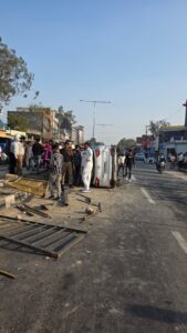टक्कर के बाद कार कई फीट तक घिसटती हुई डिवाइडर पार कर विपरीत दिशा की लेन में पहुंची और पलट गई। हादसे के बाद मौके पर अफरा-तफरी मच गई। स्थानीय लोगों ने तत्काल पुलिस को सूचना दी।