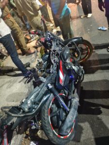 पुलिस के अनुसार, घटना रात करीब 12:10 बजे की है। बाइक संख्या UP 32 MF 0838 पर सवार मुकेश (30) निवासी थाना नगराम और राकेश (45) निवासी ग्राम करणपुर, थाना निगोहां जा रहे थे। इसी दौरान पीछे से आए किसी अज्ञात वाहन ने बाइक को जोरदार टक्कर मार दी।